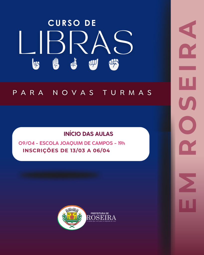 A Prefeitura abriu inscrições para o Curso de Libras para Iniciantes, uma oportunidade para quem deseja aprender a se comunicar com a comunidade surda e promover mais inclusão em nossa cidade. Aprender Libras é dar um passo importante para construir uma sociedade mais acessível, respeitosa e cheia de oportunidades para todos. Não perca essa chance de aprender algo novo e fazer a diferença!