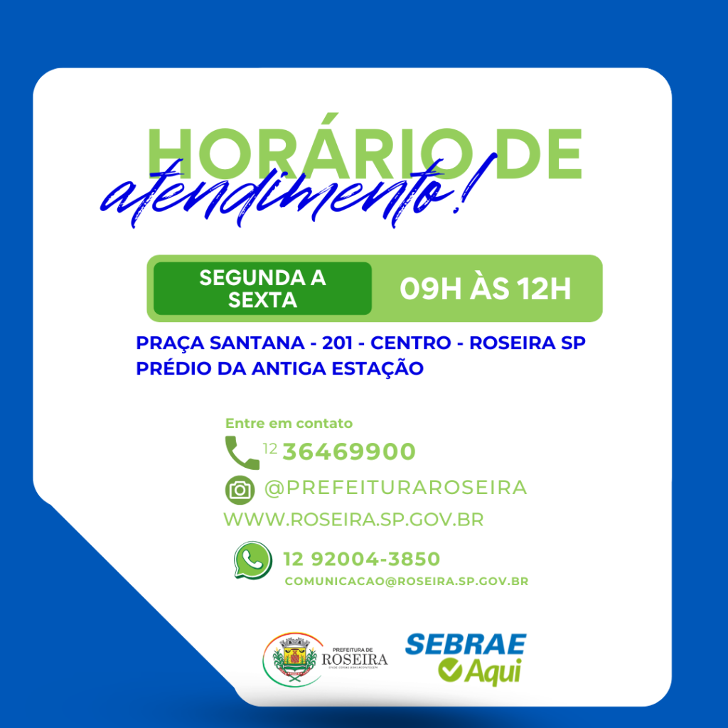 HORÁRIO DE ATENDIMENTO DO SEBRAE AQUI - ROSEIRA