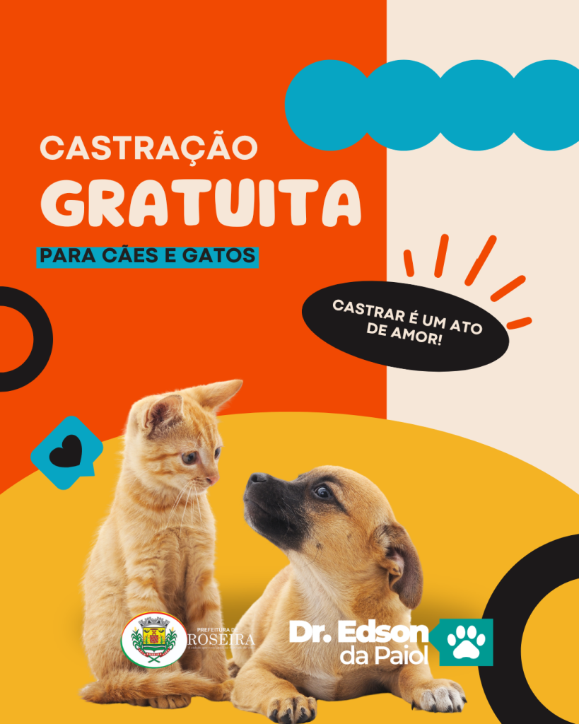 A Prefeitura de Roseira em parceria com o Dr. Edson da Payol realiza neste sábado, 28, das 08h às 16h, um mutirão de castração em cães e gatos no CEAR (Centro de Esterilazação de Animais de Roseira). Todos da lista de espera serão chamados e novos procedimentos poderão ser feitos, mediante a inscrição que podem ser feitas nesta quinta e sexta-feira em horário comercial no Canil. Acompanhe os posts para entender mais: